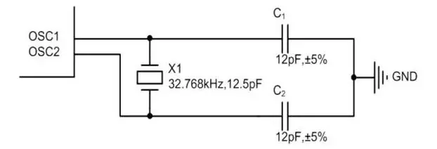 其中C1、C2为晶体的负载电容,其值应该等于石英晶体产品的技术手册中规定的数值。