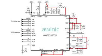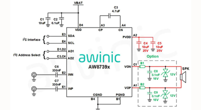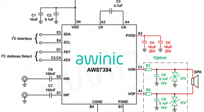 Smart K AW87394FCR系列音频功放内置 Awinic专有的Multi-Level AGC音频算法,能够根据输入信号的强度自动调节输出功率